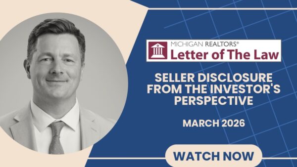 This virtual educational initiative will feature a free hour of Fair Housing CE Certified education. Michigan Realtors® Legal Team, Becky Berke and Brian Westrin will guide you through the checklist and help you stay compliant.